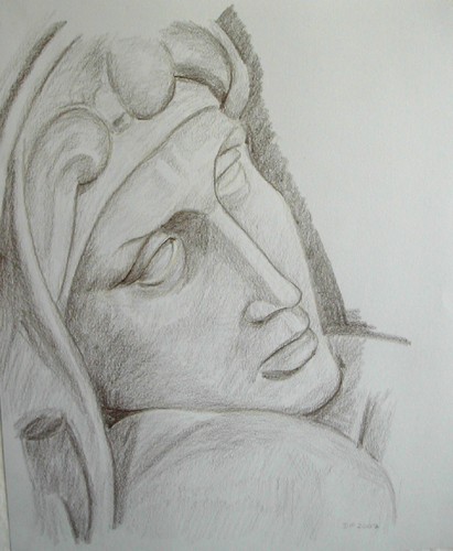 a part of an italian renaissance stone carving, done by Michelangelo...i like the softer effect a colored pencil gives, this is 2 colors