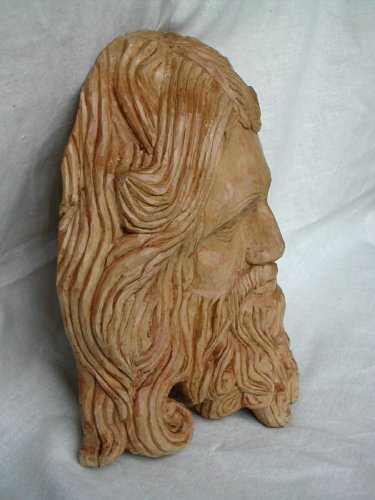 ApostleThis carving is meant to hang on wall, and contrary to classical relief as i did in the carving St Matthew Passion, i wanted emphasis the 3dimensionality, to give the carving more impact ... 18cm wide, 21cm high, 6,5cm deep. linden, waxed with colored briwax. |
