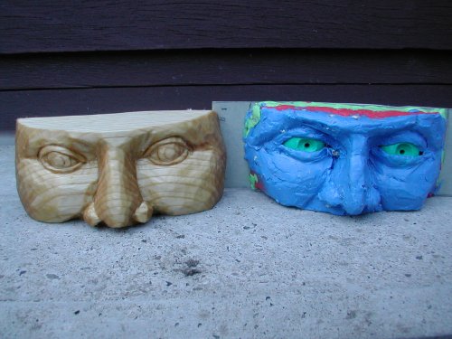 eyes and nose studyMy biggest interest is in finally be able to carve portraits, or busts depicting a thought through their emotion. For that I am learning how to carve the human head. Here i have isolated two features, i sofar struggled with, eyes, and nose. For reference i first made a model from kids plastilin. 10cm wide, 4.5 cm high and 4.5cm deep. linden, oiled. |