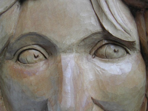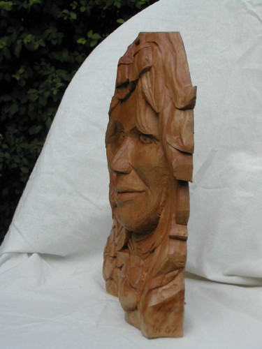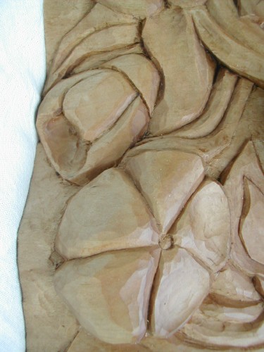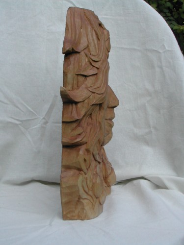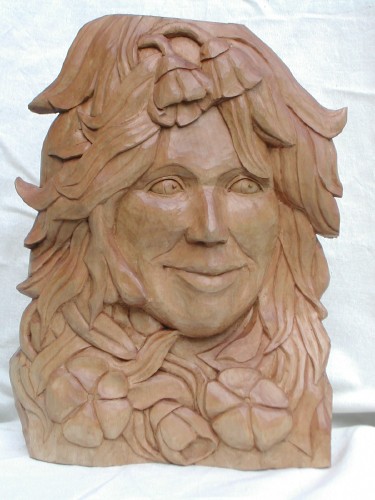Greenwoman...a very challenging piece for me, but i am happy how she turned out. the leaves were so much fun to carve, and the flowers even more ... so i plan to do such again in near future ... lifesize, linden, wood is 6,5cm deep--- finish is acrylicpaint, and colored briwax |