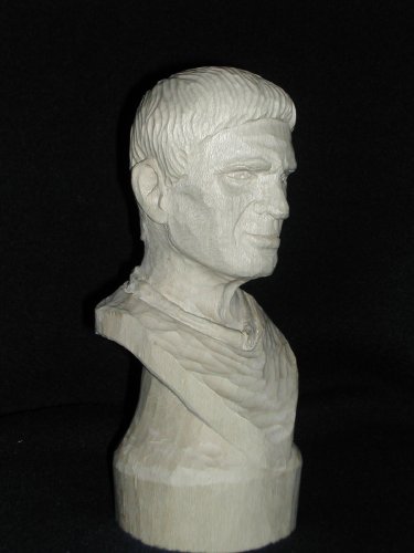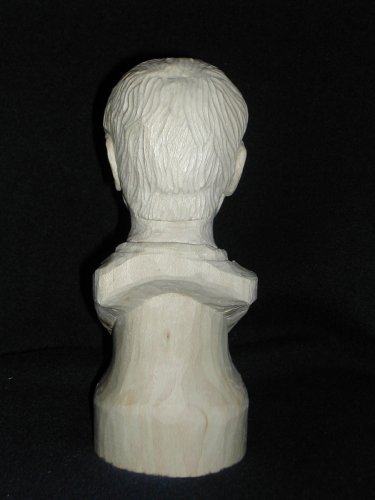 Portrait of a friendMy first serious try in carving a portrait. Also, i worked out a not-so-stylished way to carve hair I am quite happy with. The bust is a little larger than 1/3 lifesize. For this one, i had a hard time deciding on the finish, as i like the warm color and oil finish provides, but it also makes the grain very visible. In faces this can be irritating, if the grain is stripes. So, this time i decided on a wax finish. The wood will darken to a warmer color over time, the fotos actually show too white, in reality, its a light creamy warm color. 8x8x17cm. linden, waxed. |