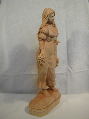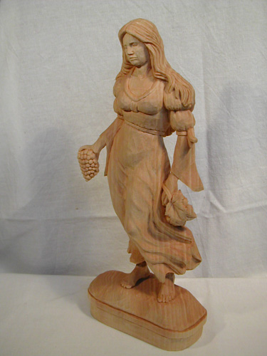 autumnthis small statue is inspired by a drawing of botticelli, and my thoughts about autumn considered as a season in the life of a woman. you can read a pictorial story how she was carved on my blog linden, the figure is 26cm (about 11'') high ... finish is a thin layer of matte clear varnish, followed by thin coat of colored beewaxglaze |