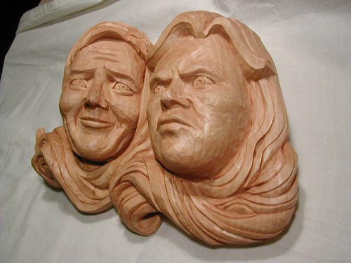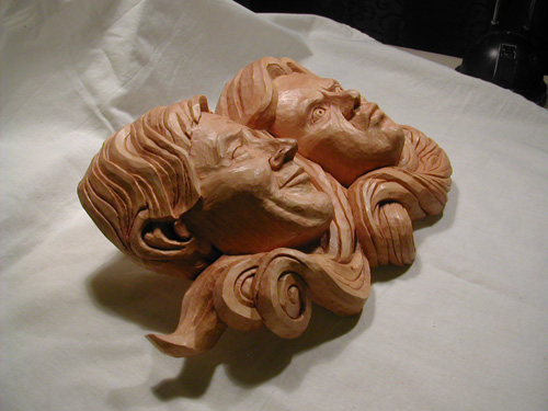 couplefor this couple i made again first a claymodel, to fix my idea about their expressions, as well as guide me into the difficult relationship between their heads. i am quite happy how this turned out... on my blog you can see a pictorial story describing how the carving was made. linden, 2/3 of life size, finish is a thin coat of clear matte varnish, followed from a light stain, followed from clear briwax |