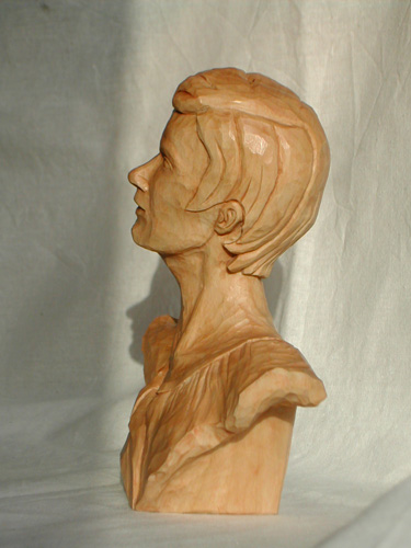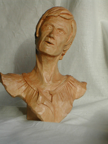 ode to joythis small bust is my second work from a clay model. this time, i used the model only as inspiration and guide, but did not attempt to copy it. this was a very enjoyable way of carving, since it allows for creative freedom while carving, whereas the model is always there to look at if a problem occurs, and thus this is easily resolved. contrary to most of my carvings, this is a bust in the round, that is, it can be viewed from all sides. linden, 15cm high, finish is a thin coat of clear matte varnish, followed from a light stain, followed from clear briwax |