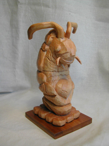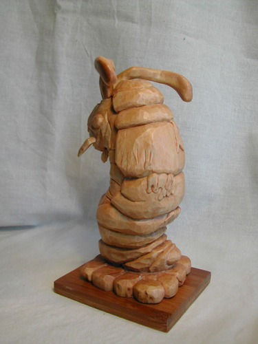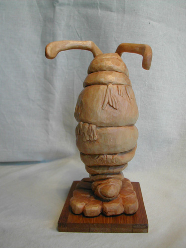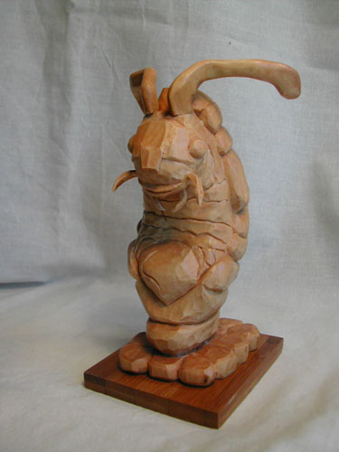 uuc - weirdo from another planet...or the present i gave to my husband for his 50th birthday ;-) what's that ? - you might rightly ask ... yes, it is an uuc, as these monsters were named by my husband. we are doing together a 3d computergame, he is doing the programming and framework, i am doing the artwork, creating the monsters, and scenery objects, the look and feel etc ... and the uuc are a group of monsters occuring in that game, i modeled, and my husband liked them most... and, since he likes strange things, i thought i make him an uuc from wood as birthday gift... linden, 15cm high, finish is a thin coat of clear matte varnish, followed from a light stain, followed from clear briwax |