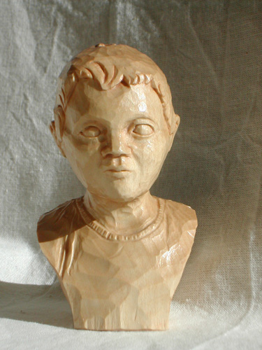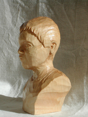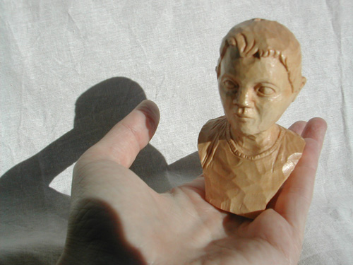 where is dad ?this little bust has started as a weekend fun carving, without any plan but i simply followed my feeling. i am very happy about how the mood turned out in this piece... linden, 9cm high, finish is a thin coat of clear matte varnish, followed from a light colored beewax glaze |